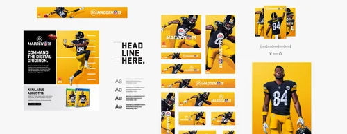 Brand design direction of EA SPORTS 18 cover art, design system, physical and digital retail and brand design guidelines.